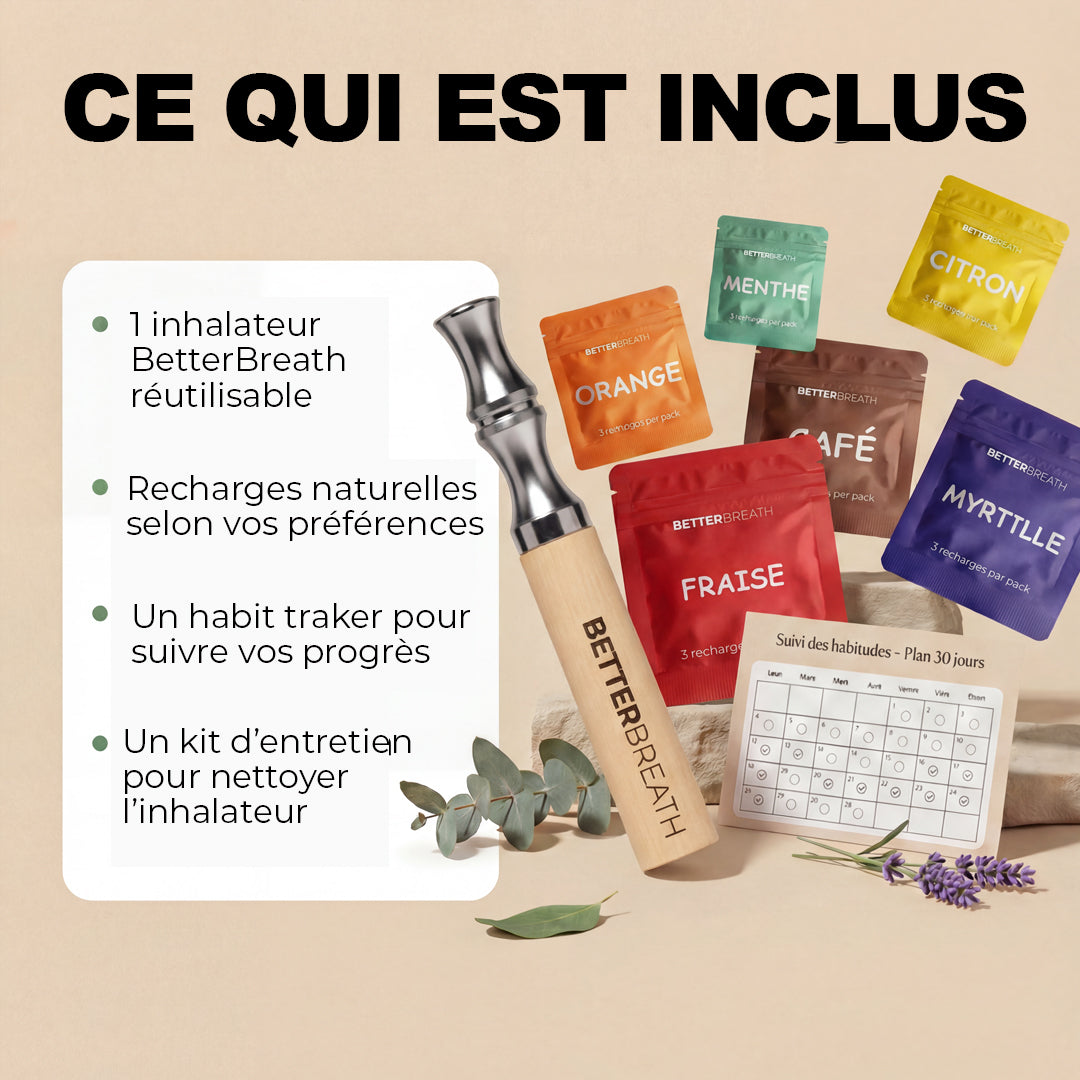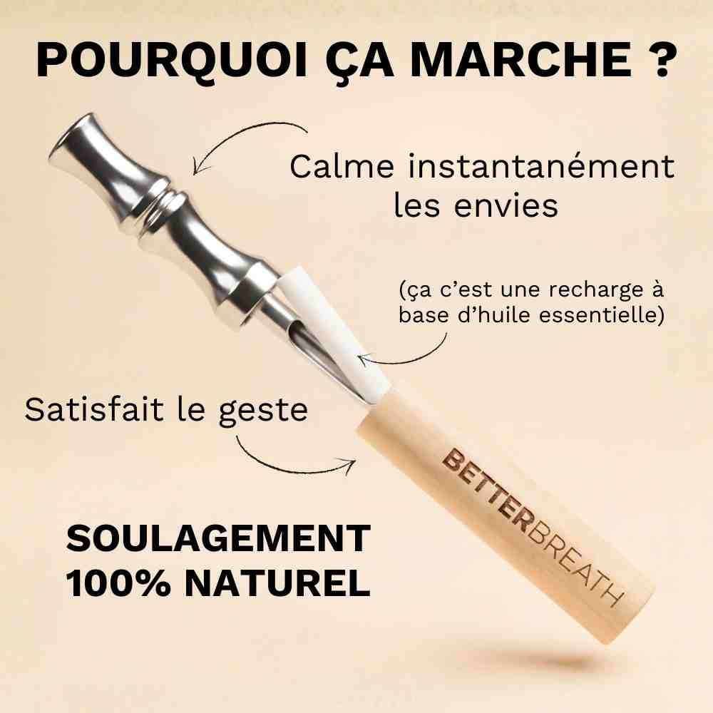 BetterBreath n’est pas “juste naturel”. La clé, c’est le rituel : le geste main-bouche, l’inspiration, la pause. C’est ça qui coupe l’envie. Les arômes ne font qu’amplifier l’effet apaisant.